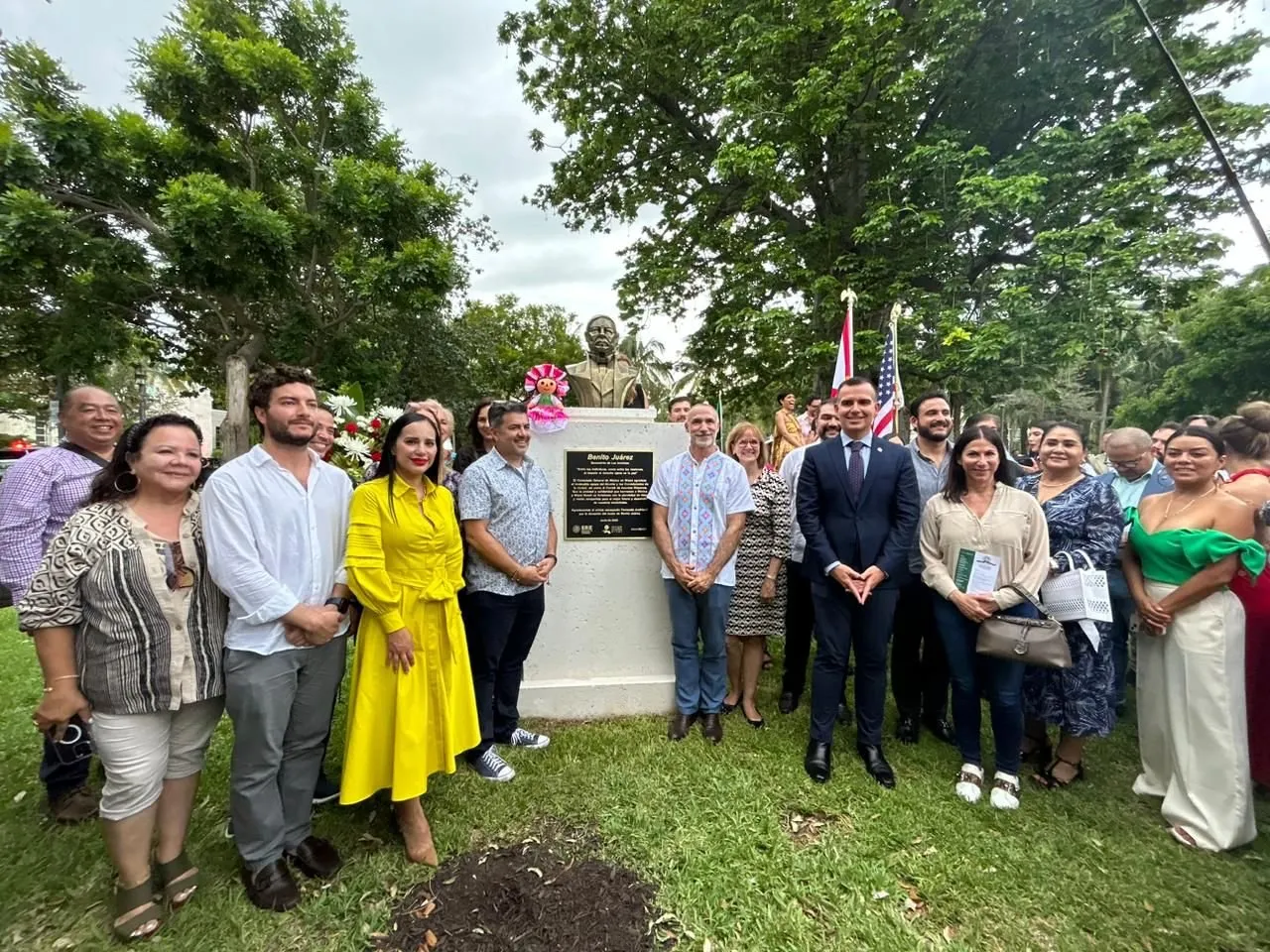 Jonathan Chait, cónsul de México en Miami, indicó que “es un honor tener la presencia de México con la figura de Benito Juárez, luchador incansable por la igualdad de los derechos para todas las personas sin distinción de origen, raza o color”.