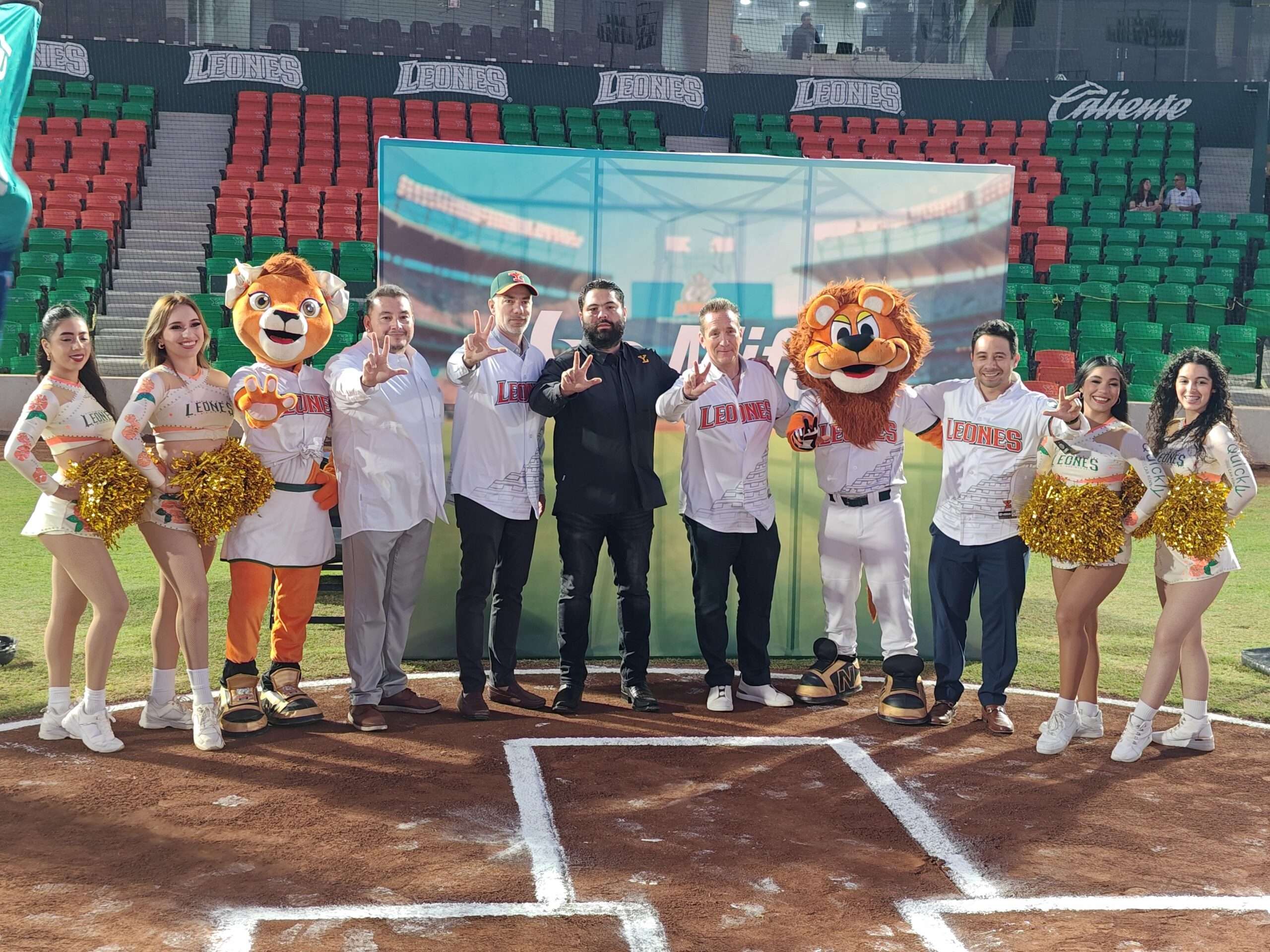 El punto culminante fue la firma oficial del convenio, acompañada de un intercambio simbólico de jerseys y la captura de las fotografías oficiales. Como parte del protocolo, se realizó también el tradicional lanzamiento de la primera bola sobre el diamante, enmarcado por la presencia de la porra y las mascotas, dejando una imagen representativa de esta nueva alianza.