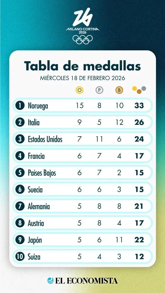Como parte de esta cobertura, El Economista presenta los podios de la jornada del 18 de febrero: