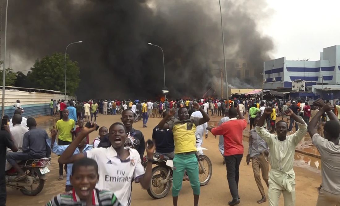 «¡Abajo Francia, abajo la Cedeao!», gritaban los manifestantes, al día siguiente de que la Comunidad Económica de Estados de África Occidental (Cedeao) diera luz verde a una posible intervención militar para restablecer en el poder al derrocado presidente Mohamed Bazoum.