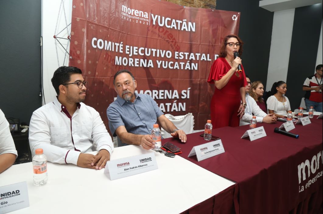 Alpha Tavera Escalante, presidenta del Comité Ejecutivo Estatal del partido Movimiento Regeneración Nacional (Morena), confirmó que hay cinco aspirantes a la gubernatura de Yucatán por su partido; se mostró confiada y convencida de que en el próximo año habrá un cambio, esto durante la presentación de su comité 2022-2025.