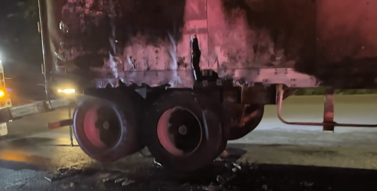 Según los primeros reportes, el tráiler impactó a la moto y la arrastró varios metros; la fricción habría provocado que la motocicleta se incendiara, extendiéndose el fuego hasta la parte trasera de la pesada unidad.