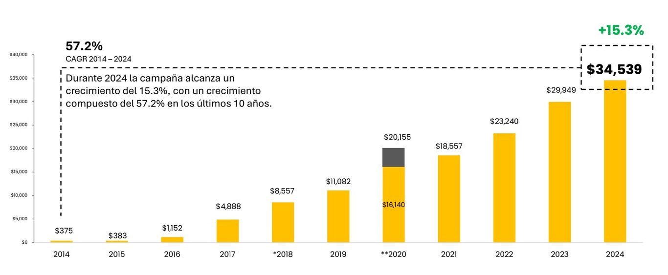 Si se trata de compras en línea, los mexicanos siguen gastando. Al Hot Sale la tendencia le beneficia porque su crecimiento ha sido, otra vez, a doble dígito. El dato duro es contundente: Hot Sale 2024 creció en 15% en ventas totales respecto a la misma campaña del 2023.