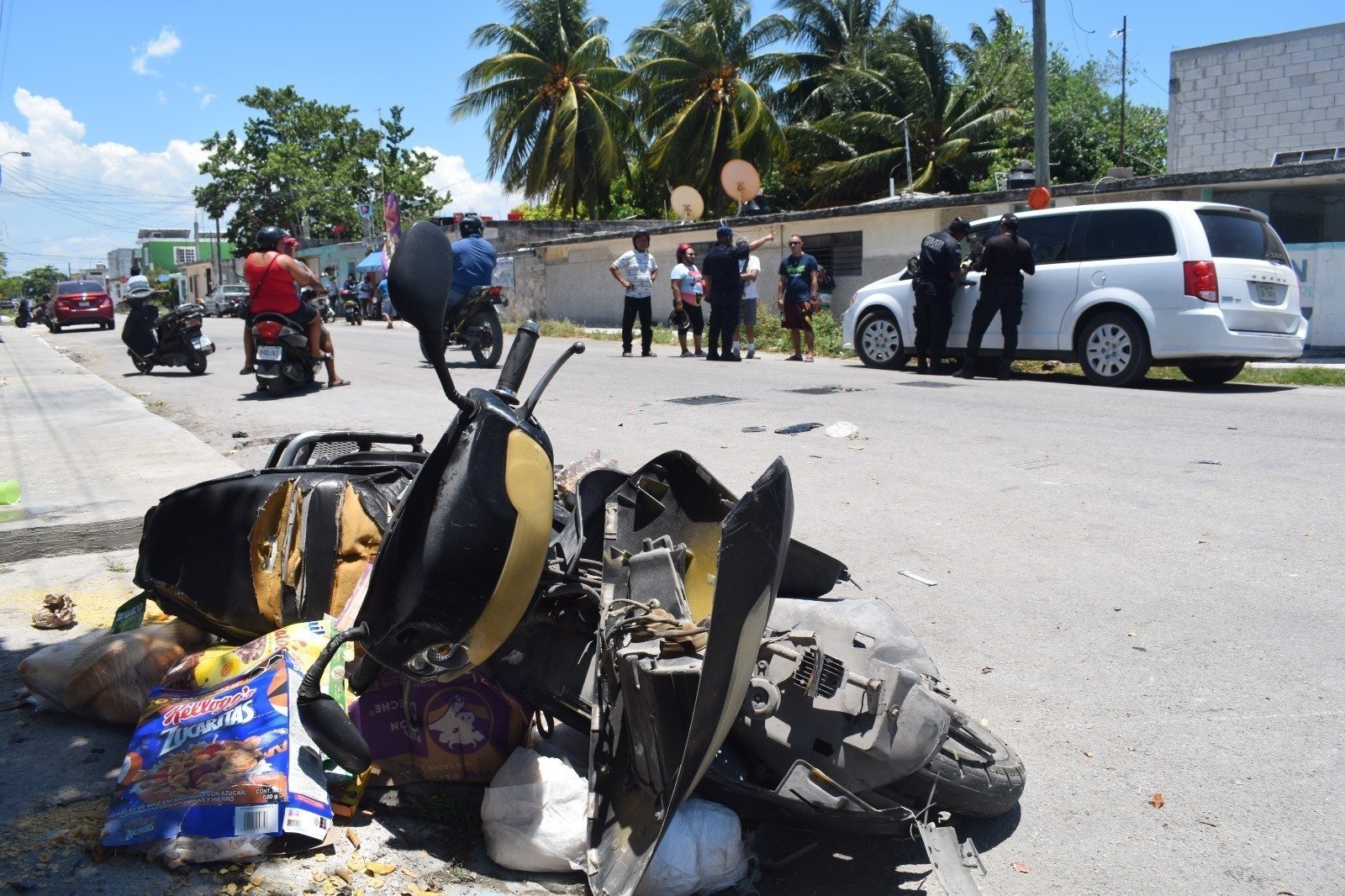 El incidente sucedió alrededor de las doce del día cuando una moto Italika con dos mujeres de aproximadamente 25 años y un pequeño de cuatro de edad, circulaban con vía de preferencia sobre la calle 33, pero al llegar al cruzamiento con la calle 56 se les atravesó una camioneta de la marca Dodge tipo “Caravan” con placas de circulación quintanarroenses USK-144-K.