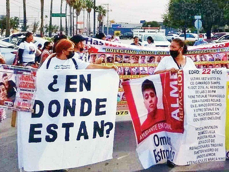 Colectivos que tienen a sus familiares desaparecidos también ayer una marcha pacífica en las calles de Reynosa, Tamaulipas, en la que exigieron a los tres niveles de gobierno implementar una mejor estrategia para las búsquedas y localización de personas.