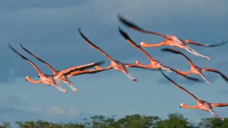 Estas aves rosadas se encuentran en los humedales a lo largo de toda la costa yucateca y la mejor época para observarlas en grandes parvadas son los meses de febrero y marzo en Río Lagartos y en Celestún.