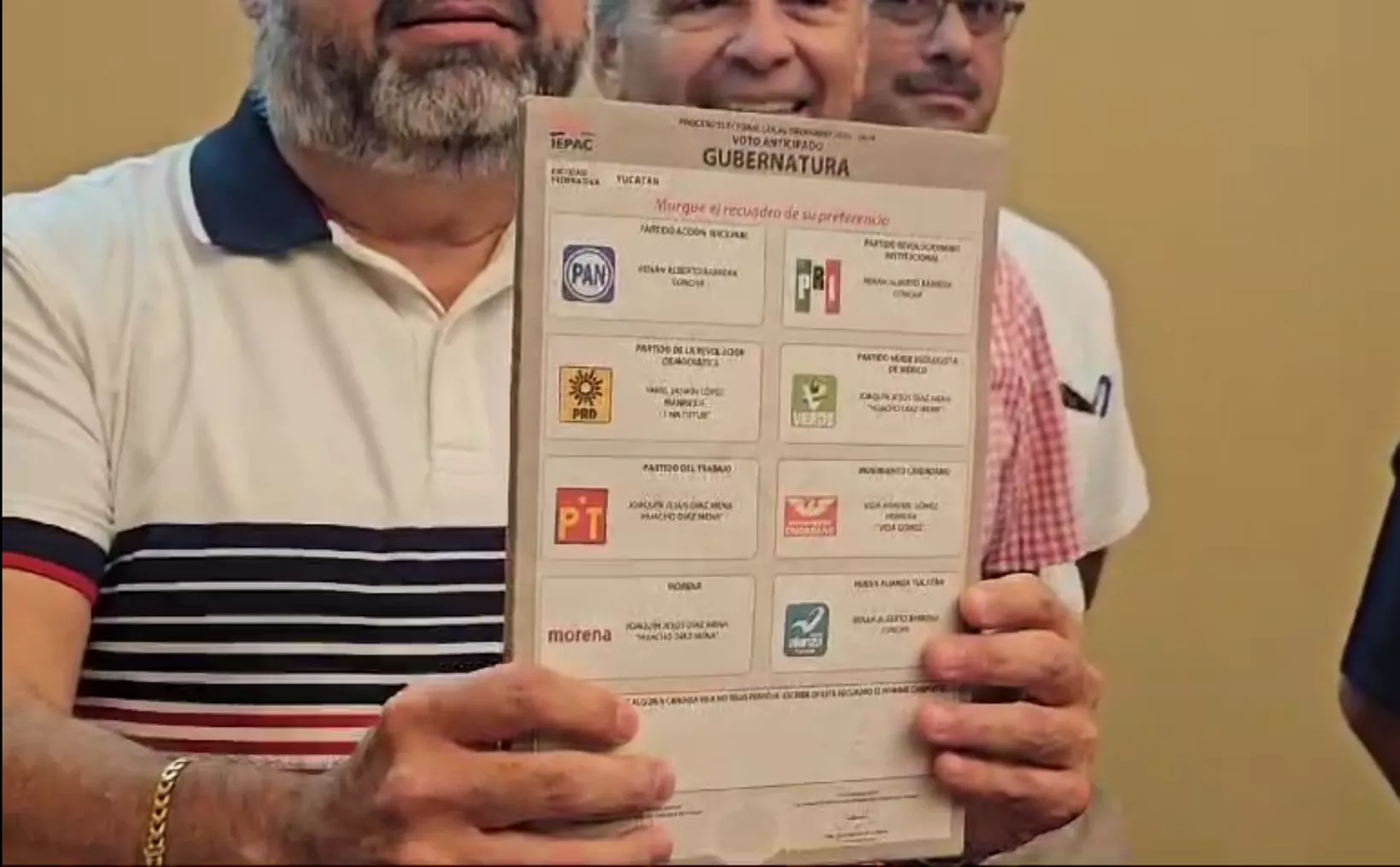 El Instituto Electoral y de Participación Ciudadana (Iepac) presentó ayer la boleta para la elección a Gobernador de Yucatán, que se utilizará en la jornada del domingo 2 de junio, papeleta de color beige, y cuyo cargo se disputan cuatro candidatos.