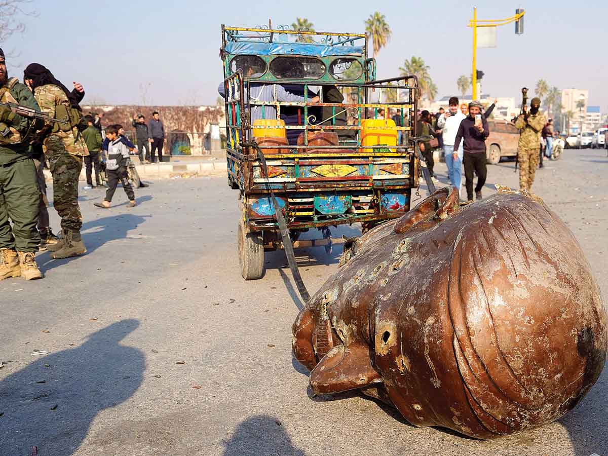Esta situación enardeció el ánimo de la población. En un suburbio de Damasco de mayoría drusa y cristiana, decenas de manifestantes derribaron una estatua de Hafez al Assad, padre y predecesor del actual presidente sirio, según videos difundidos en redes sociales.