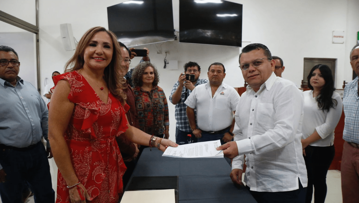 En su calidad de representante del partido ante el Instituto Electoral y de Participación Ciudadana (Iepac), la diputada Karla Franco Blanco entregó la documentación correspondiente para el registro al consejero presidente Moisés Bates Aguilar.