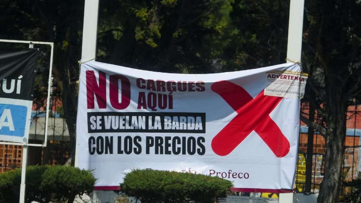 Las estaciones restantes, es decir, 18, quedaron sujetas a la ‘vergüenza pública’. Personal de la Profeco colocó lonas con el mensaje: “No cargues aquí, se vuelan la barda con los precios”.