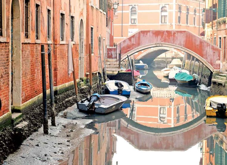 «La sequía anticiclónica con alta presión no hace crecer el agua. Además, las corrientes que vienen del norte impiden el desarrollo de las mareas en el Adriático. El próximo fin de semana, entre otras cosas, también habrá luna llena, en la que las máximas son más altas y las mínimas más bajas”, dijo ayer al diario Corriere della Sera el jefe del centro de mareas, Alvise Papa.