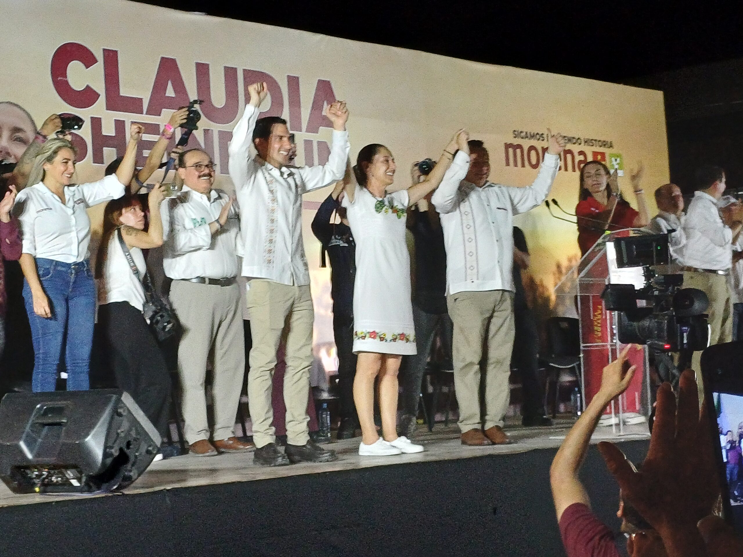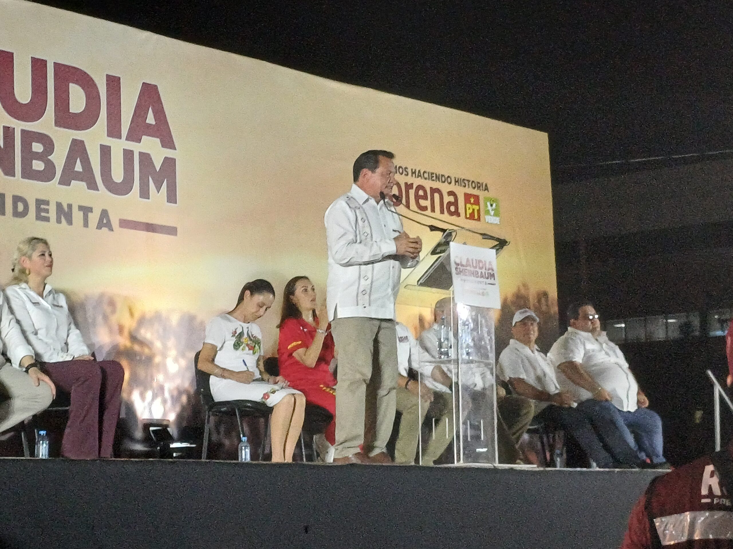 Rommel Pacheco fue el primero en tomar la palabra, dándole la bienvenida a Claudia Sheinbaum al estado de Yucatán y a la ciudad de Mérida, incentivando al público a apoyar a la candidata presidencial.