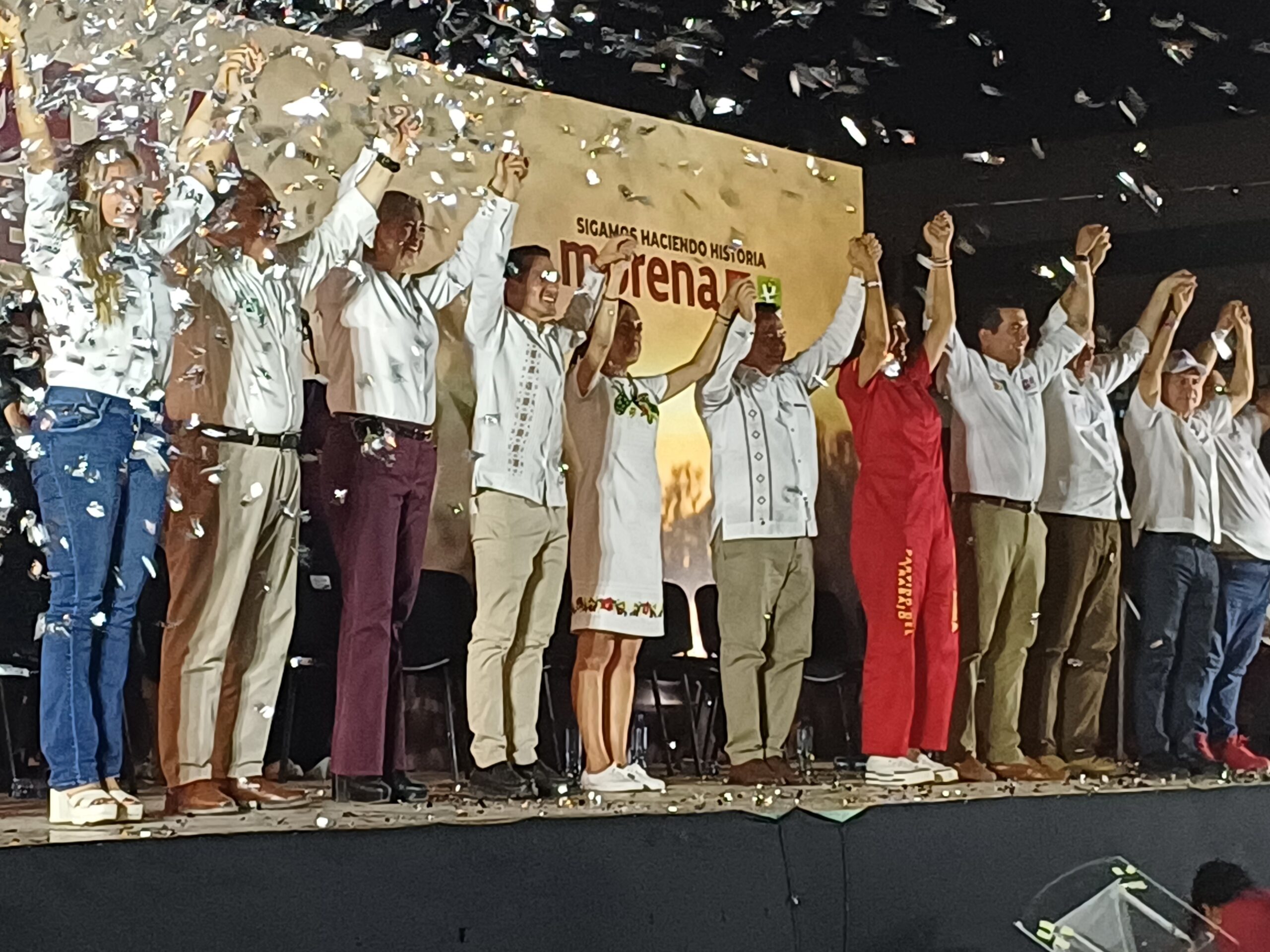 Junto a Joaquín Díaz Mena, Rommel Pacheco y personajes políticos pertenecientes a Morena, PT y Partido Verde se reunieron con los ciudadanos en el parque de la Paz.