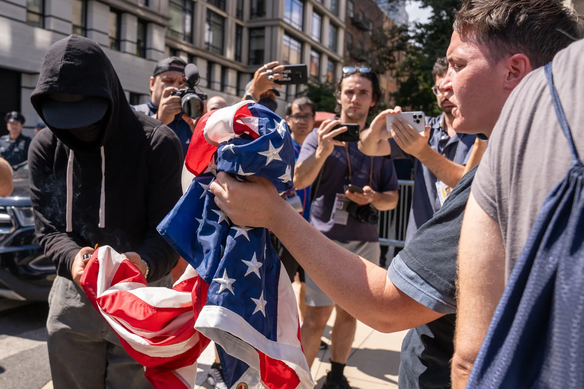 Absolute mayhem as counter protesters approach anti-immigrant MAGA protesters outside Gracie Mansion.