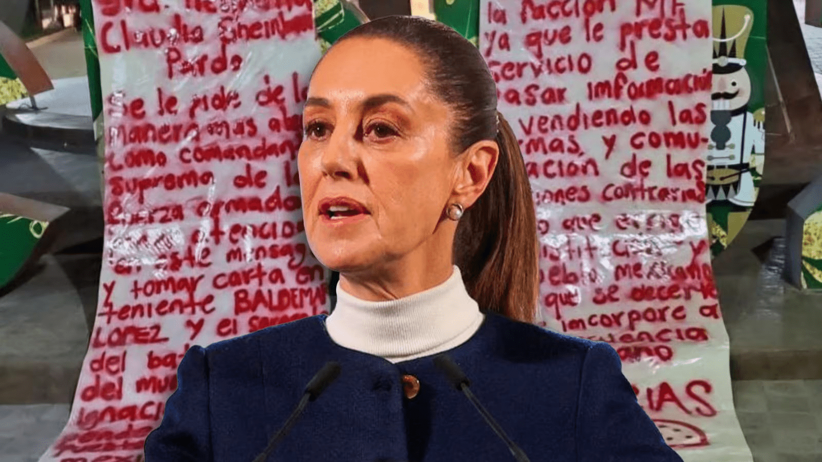 “Sra. Presidenta Claudia Sheinbaum Pardo, se le pide de la manera más atenta, como comandante suprema de las Fuerzas Armadas, que preste atención a este mensaje”, decía una de ellas.