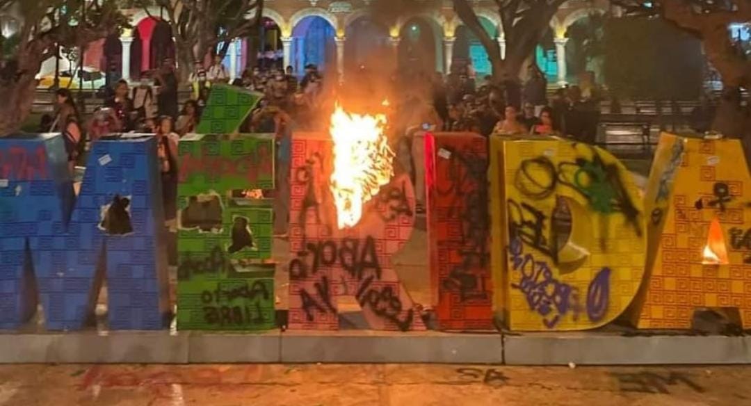 En protesta con motivo de la lucha por la aprobación del aborto en Mérida, colectivos de mujeres acudieron al centro del municipio para expresar sus exigencias, por lo que decidieron incendiar las letras turísticas de la ciudad.