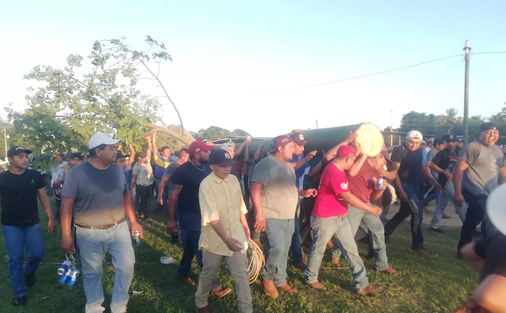 Los parroquianos cargaron el ceibo hasta llegar en el coso taurino de la colonia Expo.