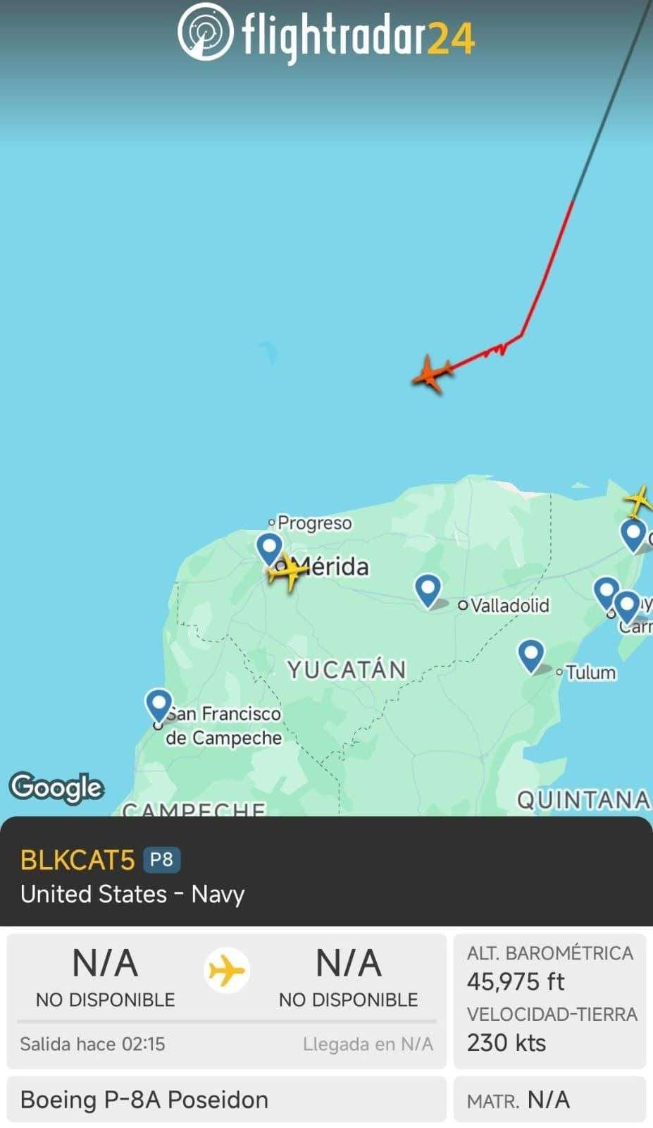 Durante la noche se difundieron en redes sociales reportes sobre el presunto sobrevuelo de una aeronave de origen estadounidense en inmediaciones de las costas de la península de Yucatán.