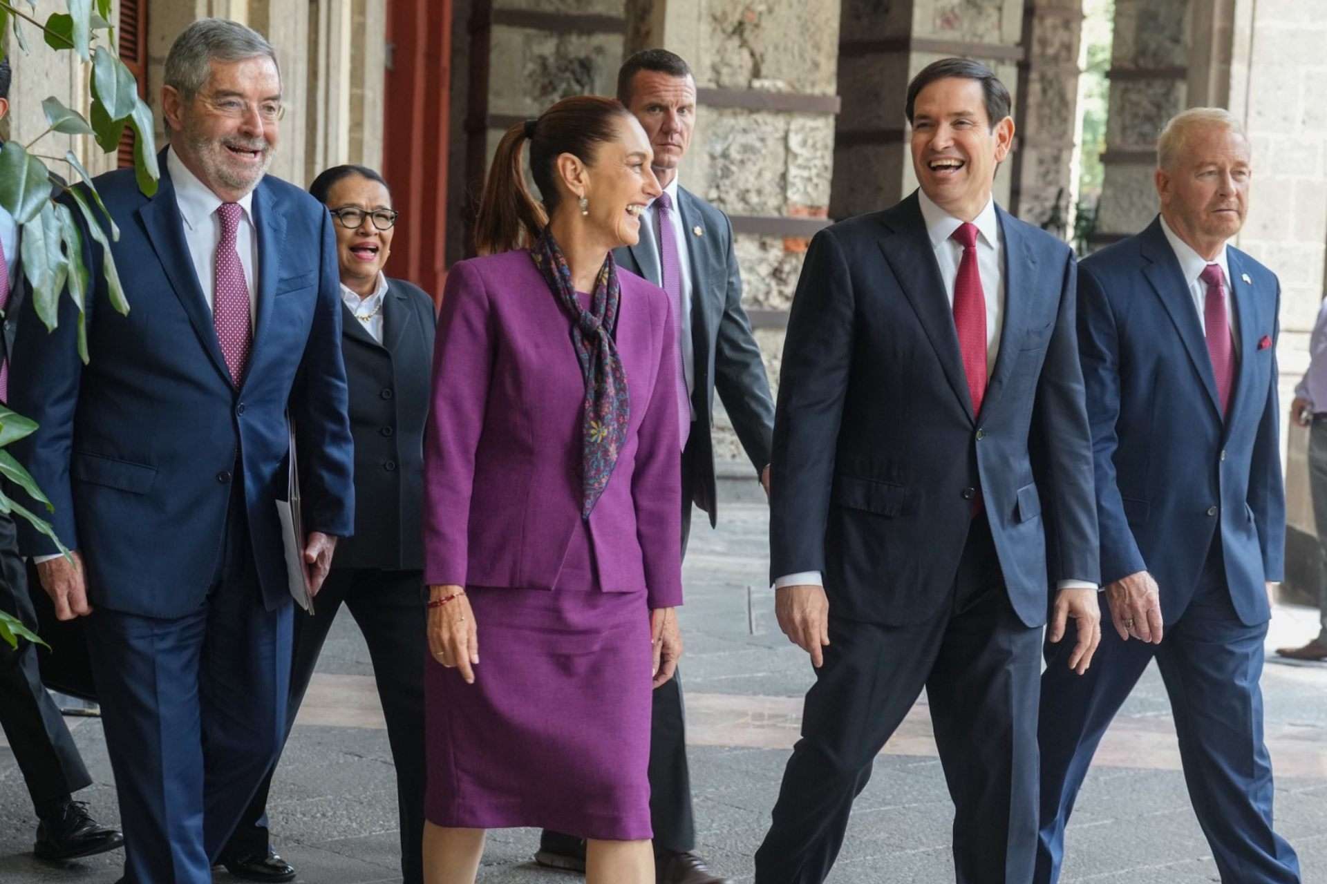 En Palacio Nacional, la presidenta @Claudiashein recibe al secretario de Estado de los Estados Unidos, Marco Rubio.