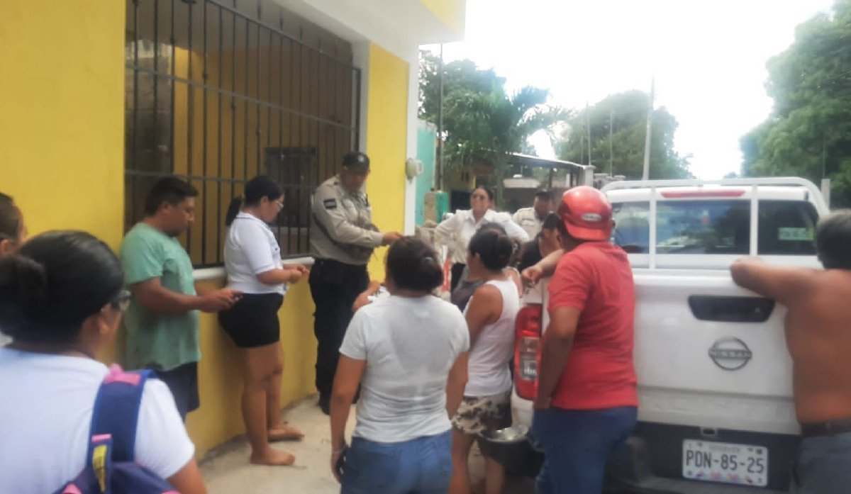La retención del personal de la CFE motivó que lleguen policías municipales y una mujer, al parecer la gerente la CFE en Izamal, quien intentó dialogar con los inconformes para recuperar el vehículo.
