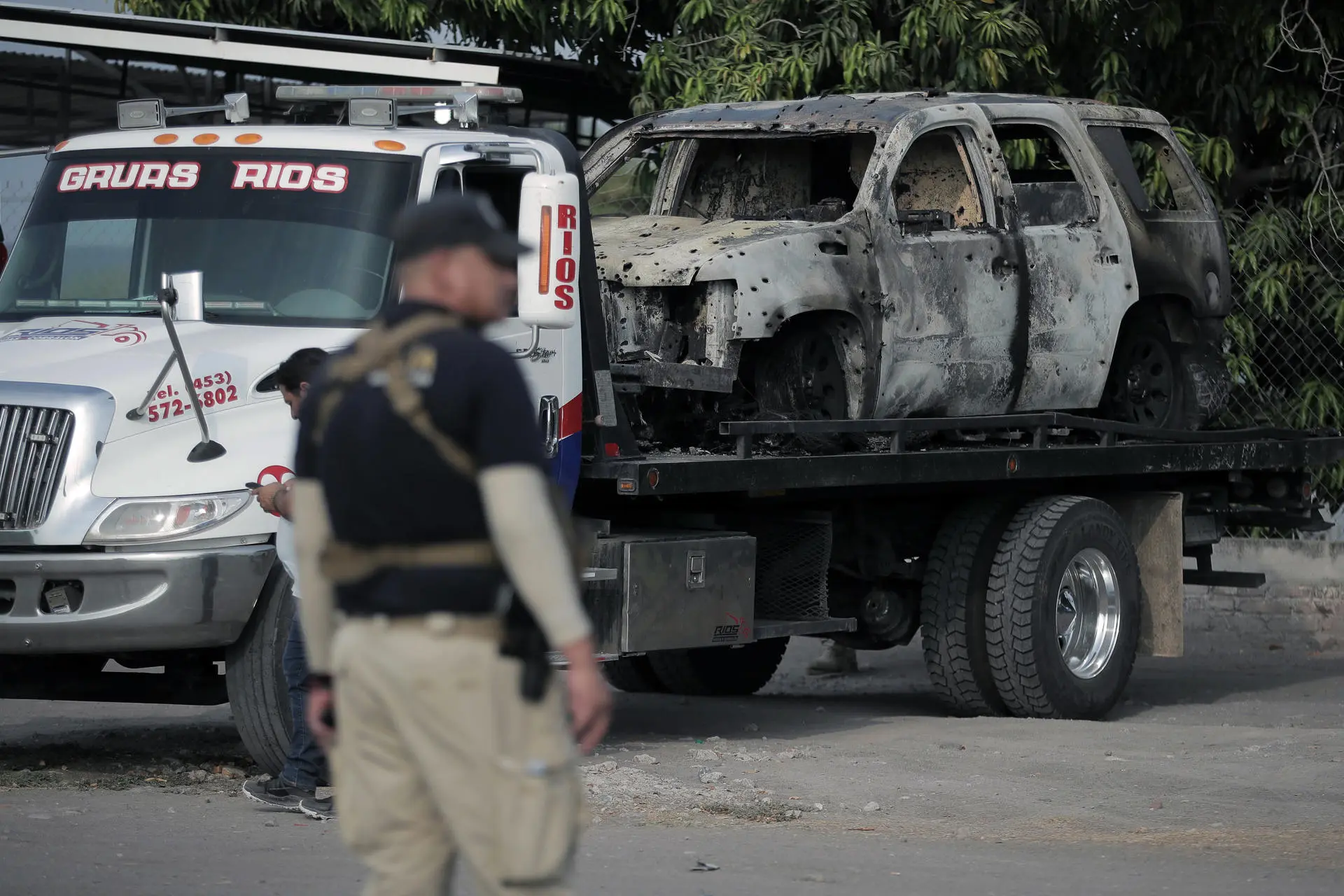 El automotor de Mora Chávez se incendió a causa de los impactos de los rifles tipo Barret, por lo que los cuerpos del líder autodefensa y uno de sus escoltas quedaron calcinados.