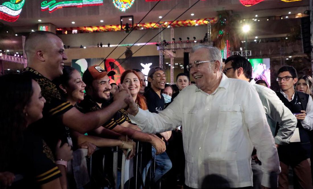 En el marco de los festejos del 231 aniversario de la Independencia, el mandatario estatal se mezcló entre los asistentes y disfruto de la serie de antojitos que se distribuyeron y escucho a los artistas que amenizaron la fiesta mejicana.