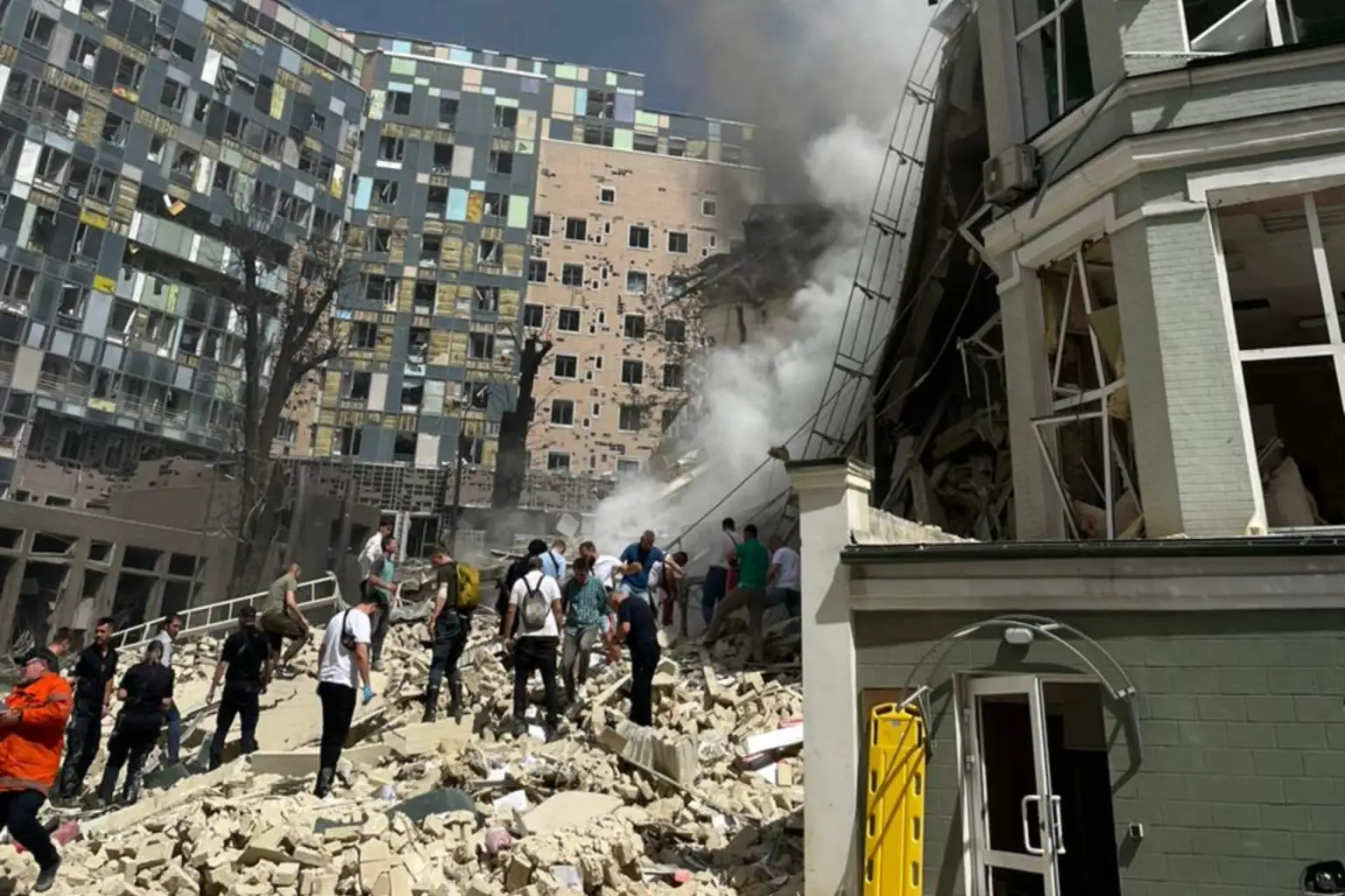Otras siete personas han muerto en una clínica de la región de Dniprovski de Kiev que también fue alcanzada por un misil ruso.