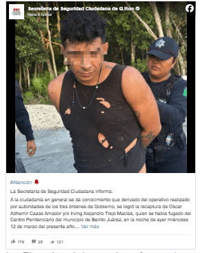 La Secretaría de Seguridad Ciudadana (SSC) de Quintana Roo informó la recaptura inmediata de dos de los reos fugados.