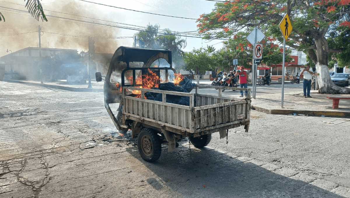 Un motocarro adaptado como recolector de basura se incendió por una falla mecánica cuando transitaba por las calles del Centro de Motul