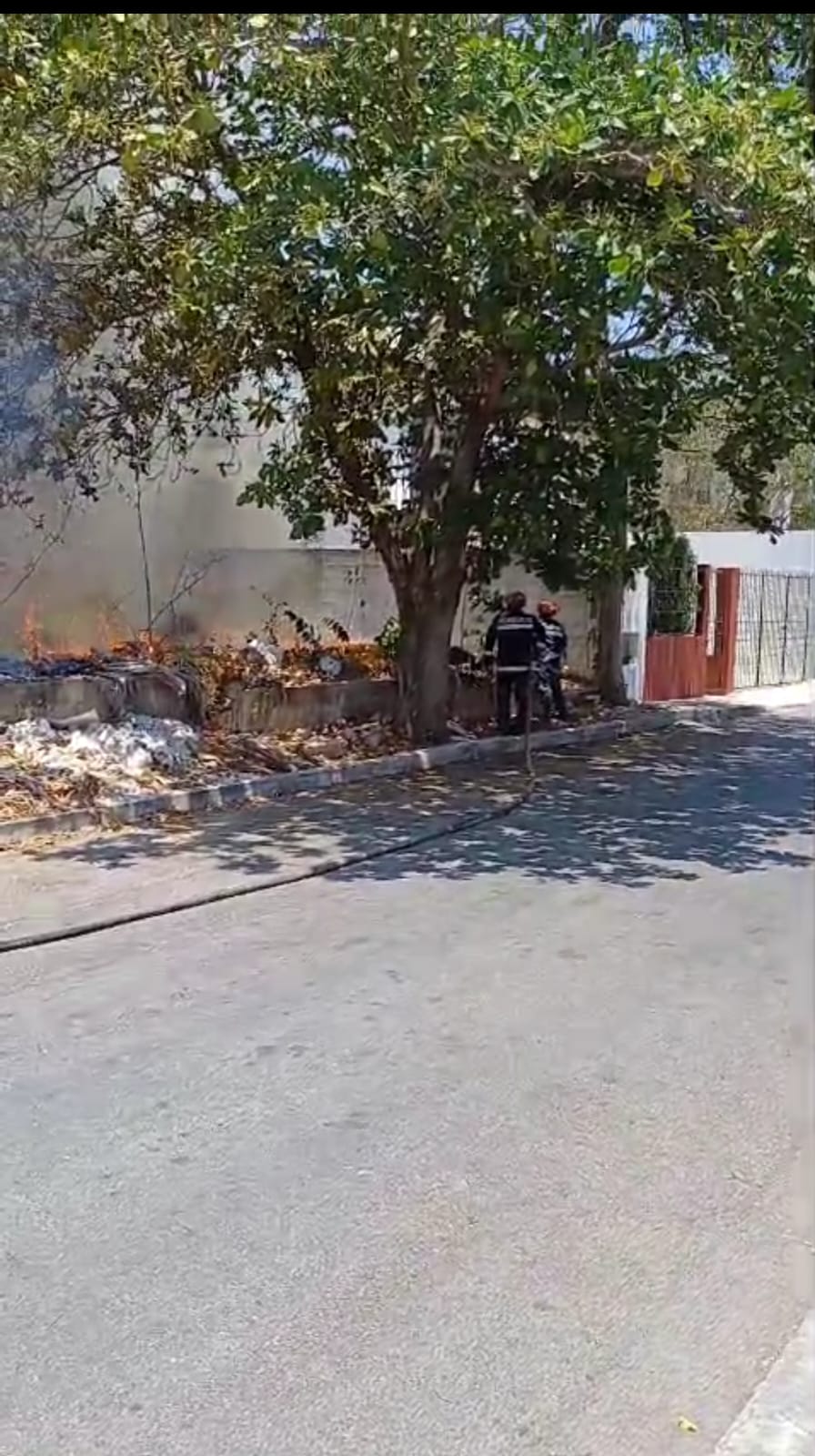 Posteriormente acudieron al lugar el equipo de bomberos para mitigar las llamas. Parte de los vecinos acudieron al lugar e incluso brindaron ayuda. Los bomberos rociaron agua en todo el lote baldío y sus alrededores, debido a que el fuego se había extendido por casi todo el terreno.