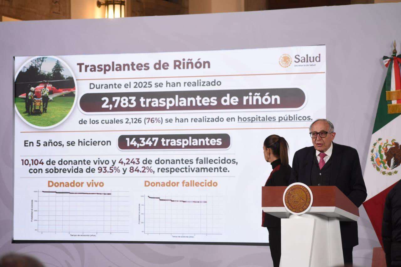 En el caso del trasplante renal, informó que “se han realizado dos mil 783 trasplantes de riñón”, de los cuales dos mil 126, el 76 por ciento, se han realizado en hospitales públicos.