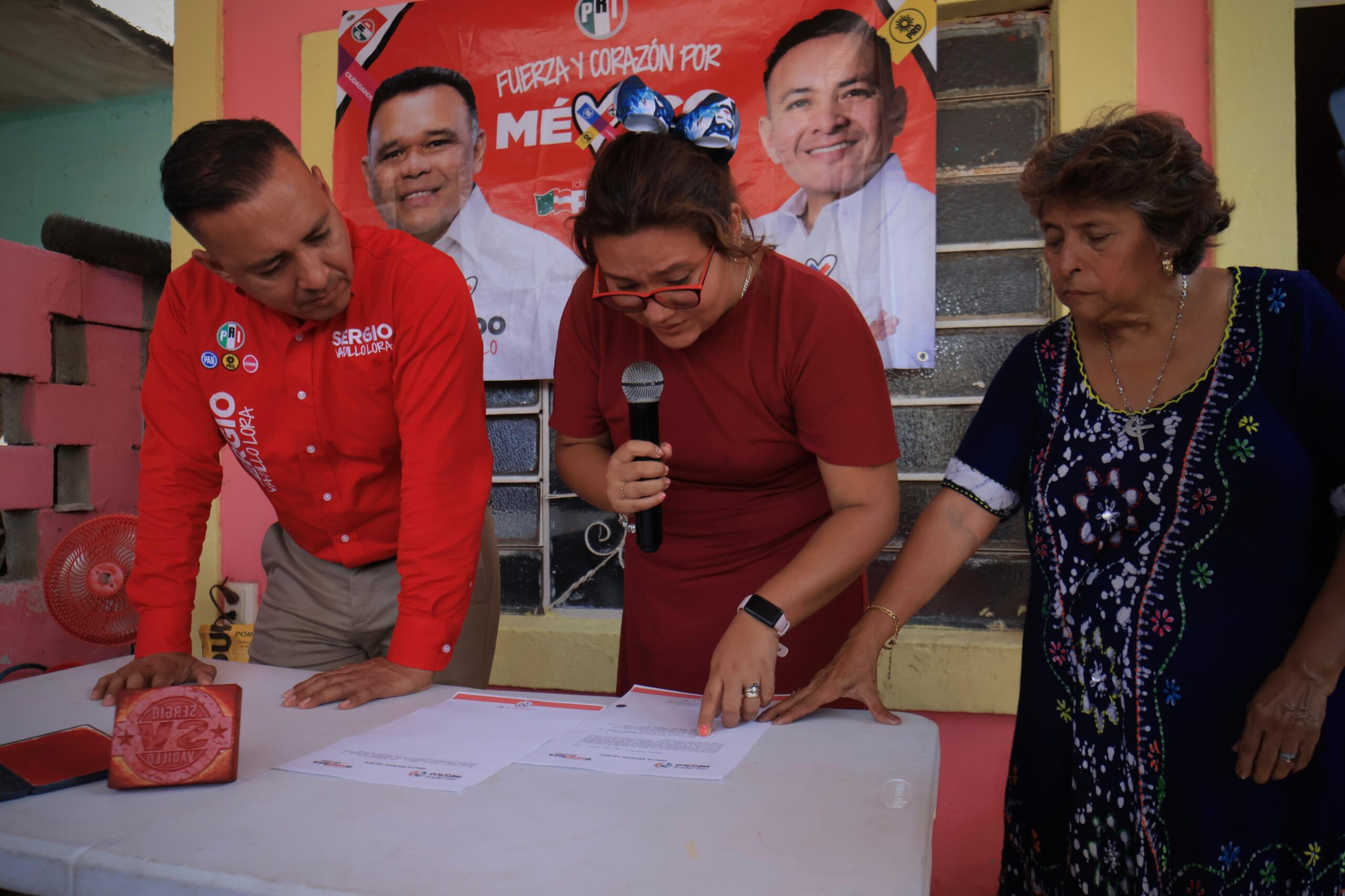 En la colonia Bojórquez, el abanderado recogió una queja de Karla Cañas Trujillo para una mayor vigilancia pues hay robo de medidores de agua.