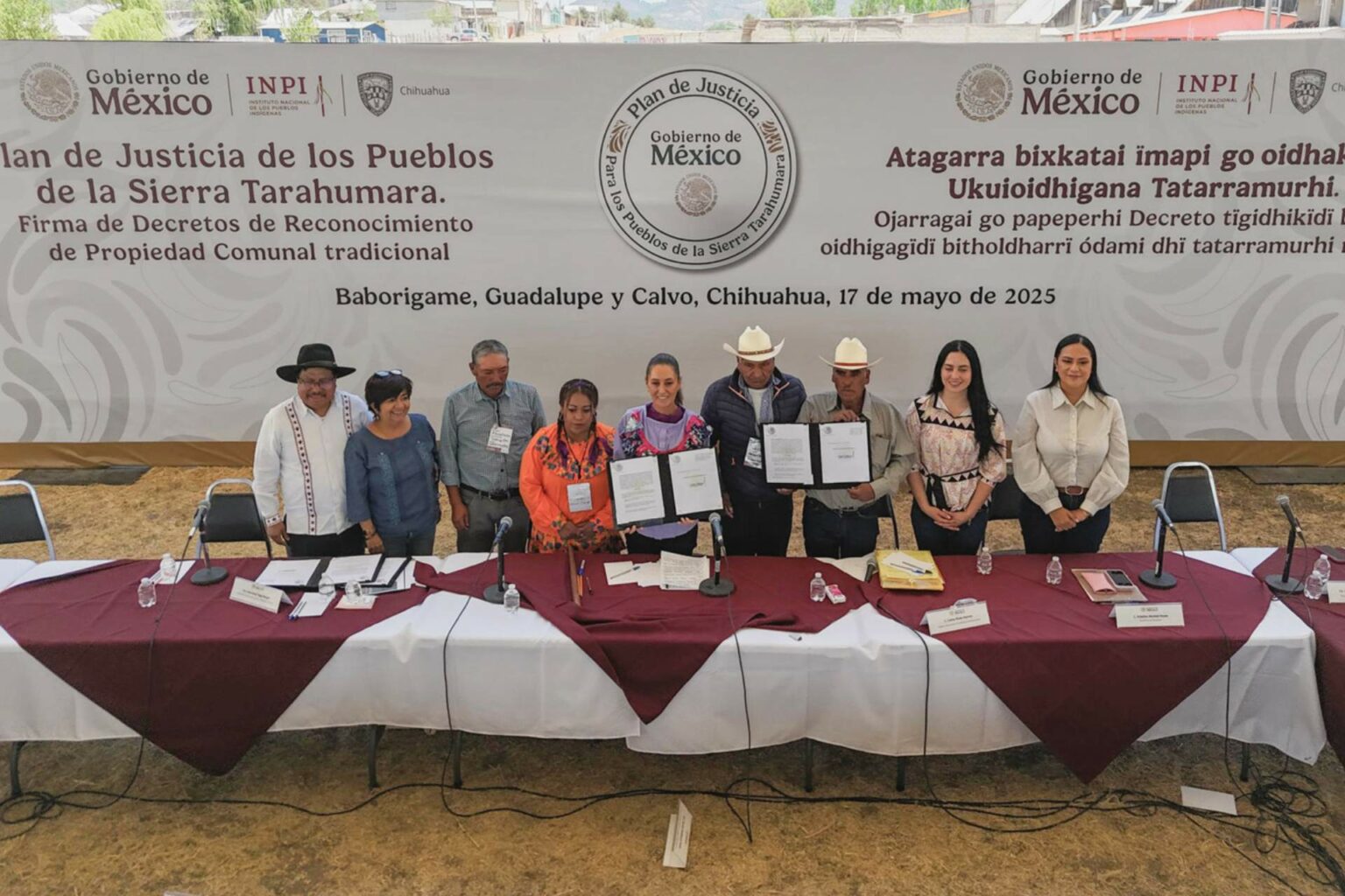 Como parte del Plan de Justicia de los Pueblos de la Sierra Tarahumara, la presidenta Claudia Sheinbaum firmó dos decretos de reconocimiento de propiedad comunal tradicional de tierras, a través de los cuales se restituyen 502.3 hectáreas a la comunidad de Mesa Colorada del pueblo Ódami y 317.9 ha a la comunidad de Mogótavo del pueblo Rarámuri, lo que significa regresarles la tierra que siempre ha sido suya.