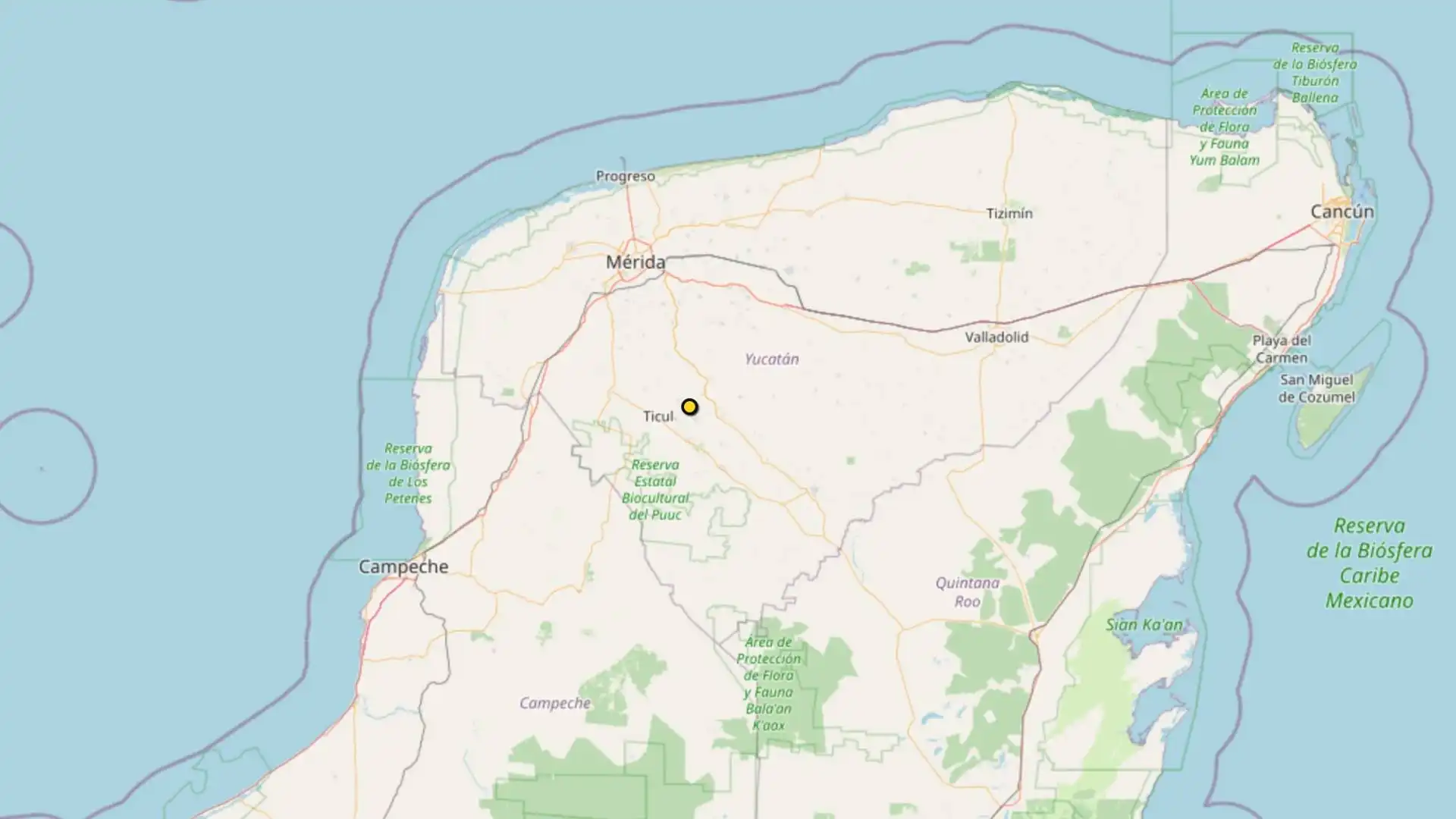 Un sismo de magnitud ~4.1 con epicentro cerca de Ticul, Yucatán.