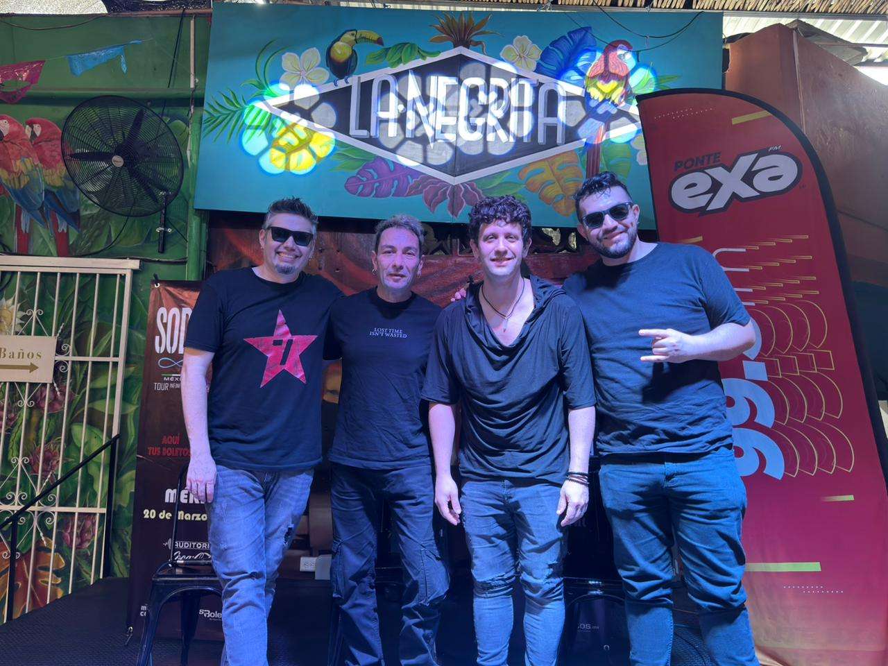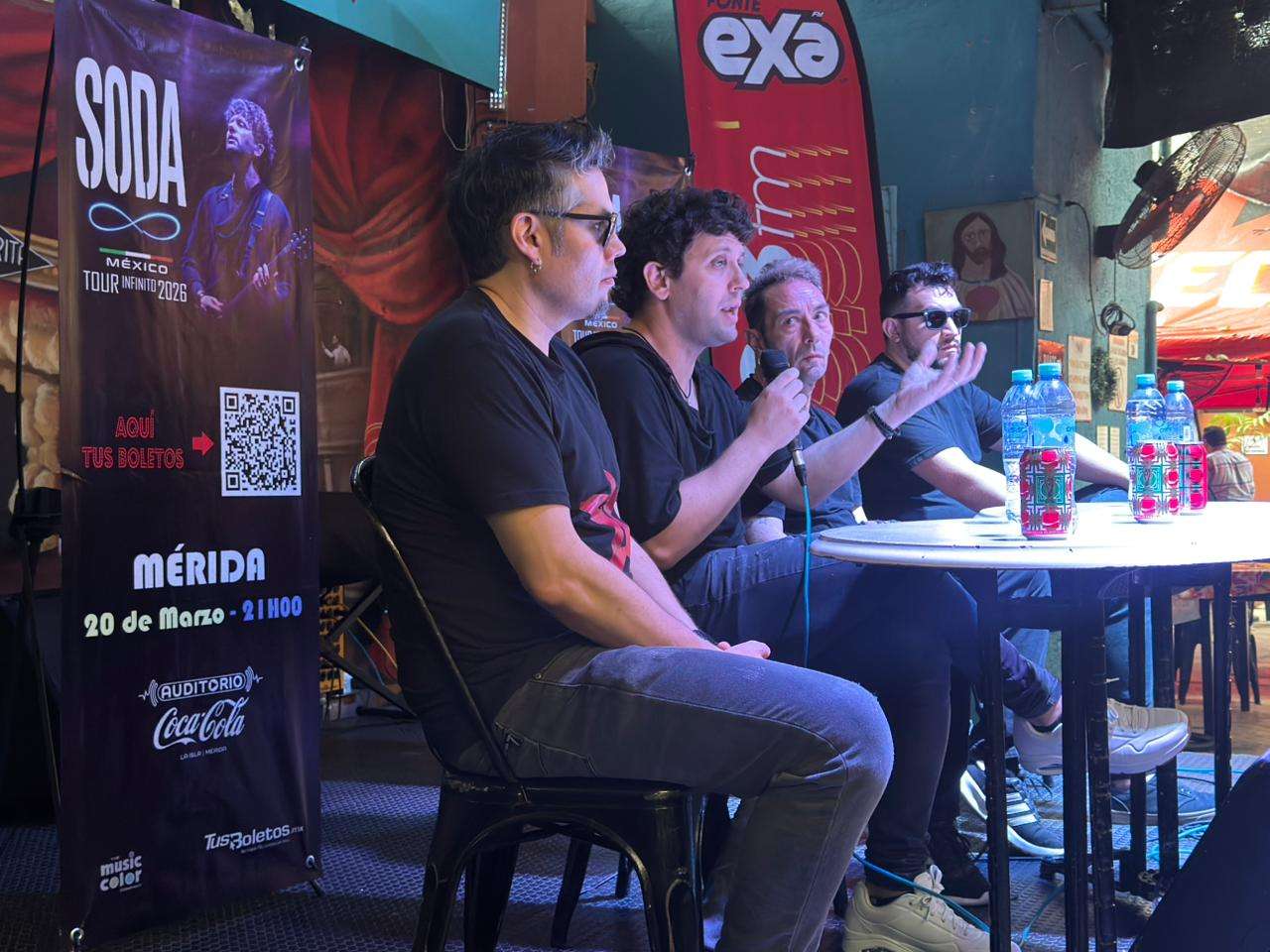 En rueda de prensa realizada en La Negrita Cantina, los integrantes Frank Guerrero (batería), Juan Hernández (voz y guitarra principal), Pablo Estrella (guitarra y coros) y Santiago “Santi” Izquierdo (bajo), compartieron detalles sobre este proyecto que nació en 2016 bajo el nombre de Soda Eterno, evolucionando hasta convertirse en Soda Infinito, una propuesta que contó con el impulso del fallecido Daniel Sais, ex tecladista de Soda Stereo.