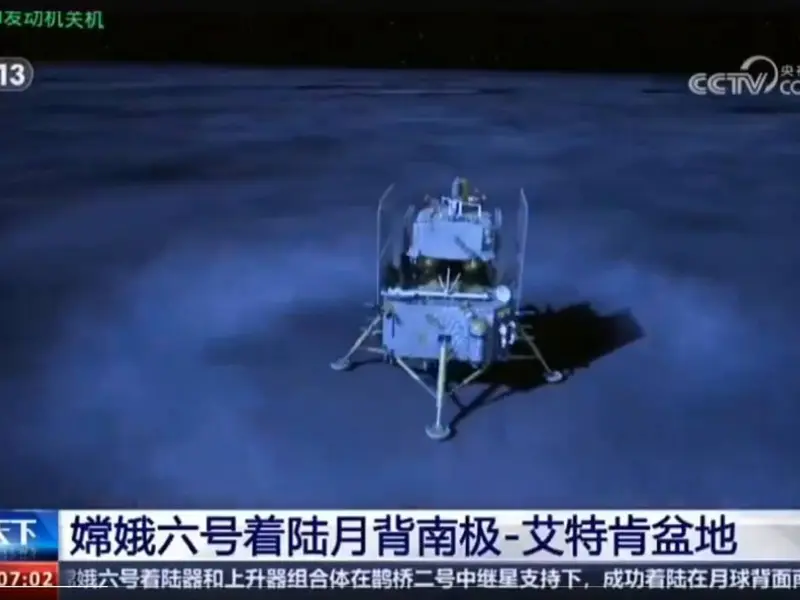 La sonda Chang’e-6 alunizó en la inmensa Cuenca Aitken, uno de los más grandes cráteres de impacto conocidos en el sistema solar, indicó Xinhua citando a la Agencia Espacial de China.
