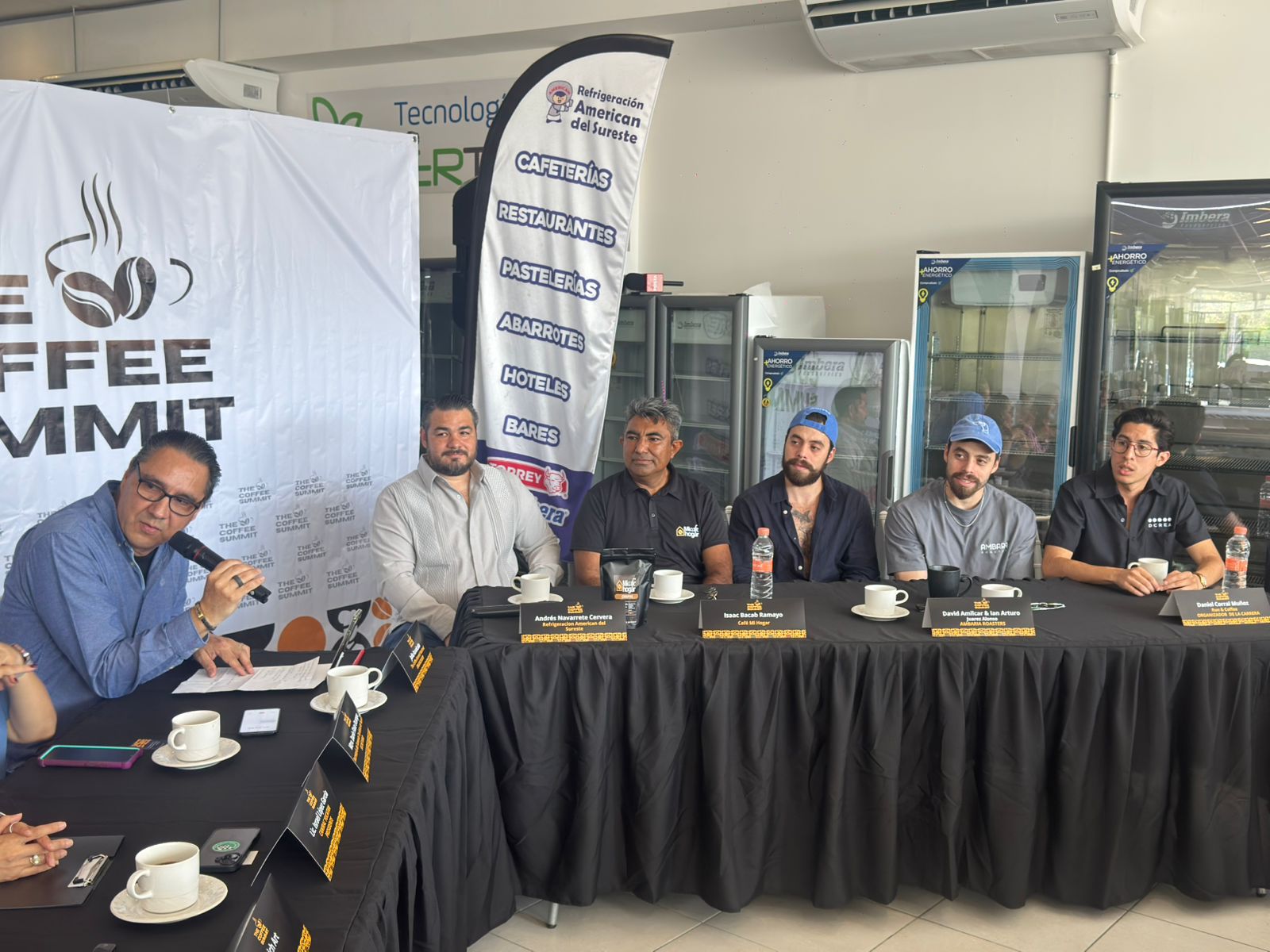 Roberth Wilson & Javier Beci de Handcrafted Pastries Mano, la artista Reich Art, Lic. Israel Lopez Garcia, Presidente de la Canirac Yucatán, el Secretario de Fomento Turístico de Yucatán, el Maestro Dario Flota Ocampo, Julio Ruvalcaba, Organizador de THE COFFEE SUMMIT NACIONAL, el Lic. Andres Navarrete Cervera, Director de la empresa Refrigeración American del Sureste, Issac Bacab Ramayo, Dueño de Café Mi Hogar, David Amilcar Juarez Alonso & Ian Arturo Juarez Alonso de Ambaria Roasters, Daniel Corral Muñoz Organizador de la Carrera Run & Coffee, y el Lic. Jose Enrique Molina Casares, Presidente de la Canaco Servytur Mérida, los cuales hablaron de los detalles más relevantes del evento que se celebrará el fin de semana.