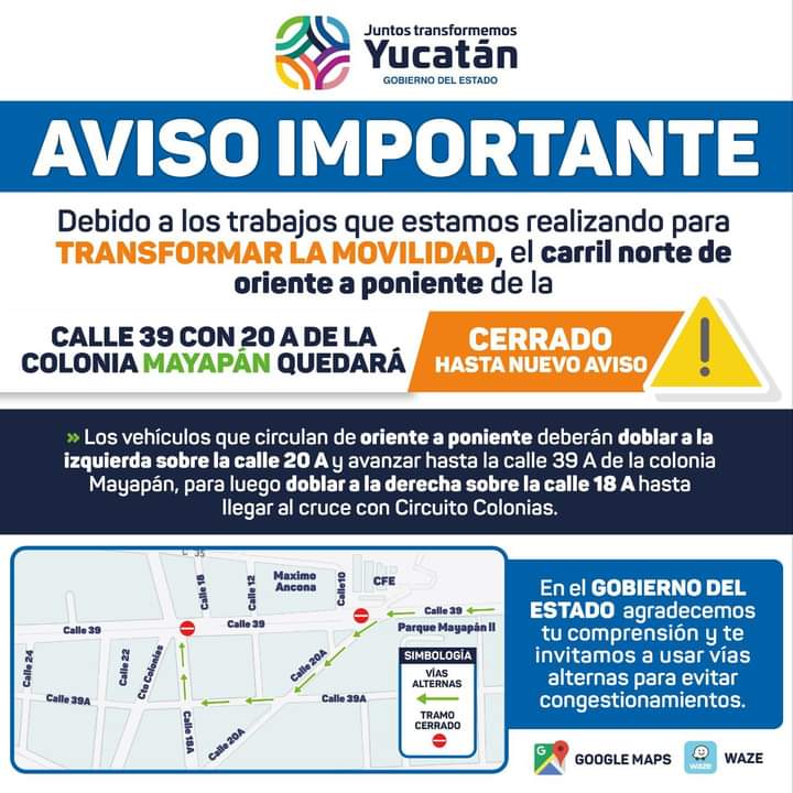 Esto se realiza con motivo de rehabilitación de la infraestructura vial, para dar un mejor servicio a las y los yucatecos.