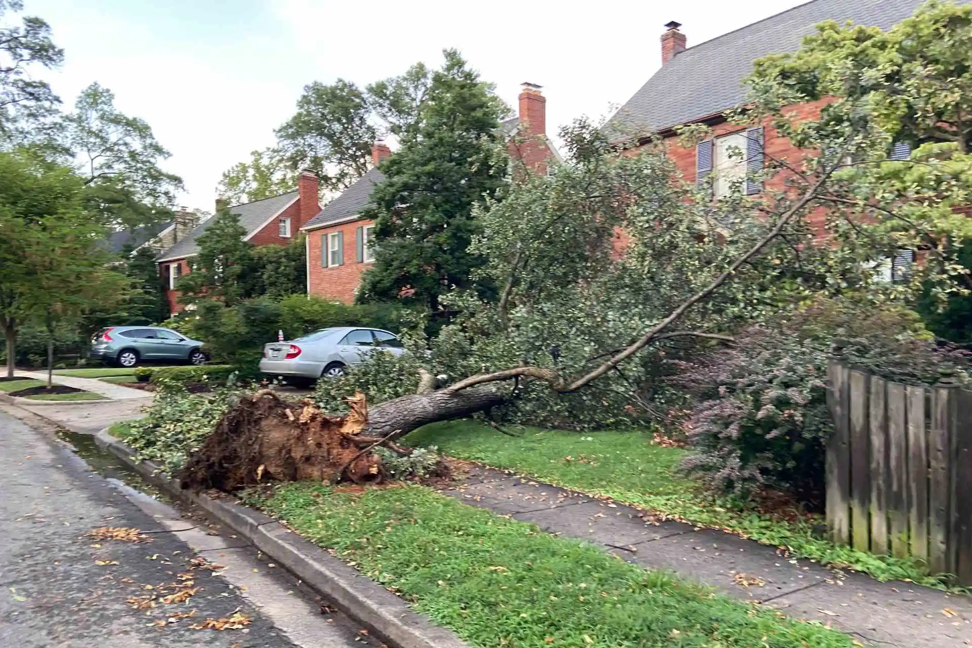 Las fuertes ráfagas de viento derribaron árboles y postes de electricidad tanto en Washington D.C., así como Virginia y Maryland.