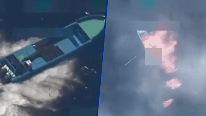 El jefe del Pentágono precisó que dos supuestos “narcoterroristas” murieron en el bombardeo, del que compartió un video donde puede verse cómo un proyectil alcanza una lancha, que estalla en llamas.