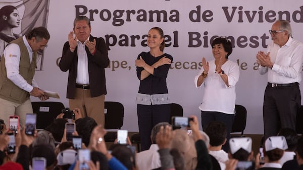 En el evento estuvo acompañada de Zoé Robledo, director general del IMSS; David Monreal, gobernador de Zacatecas; Octavio Romero Oropeza, titular del Infonavit; David Kershenobich, secretario de Salud Pública, entre otros funcionarios federales.