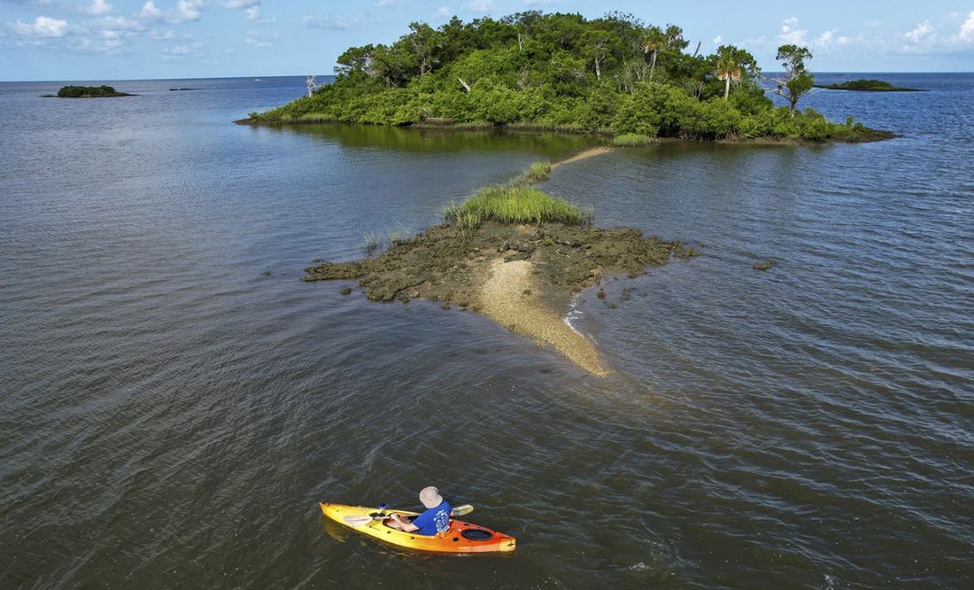 Un manantial de agua dulce burbujea entre manglares, palmeras y cedros rojos en Sweetheart Island, un paraíso deshabitado de dos acres (0.809371 hectáreas) a aproximadamente una milla (1.60934 km) de la costa de esta pequeña ciudad de la costa del Golfo.
