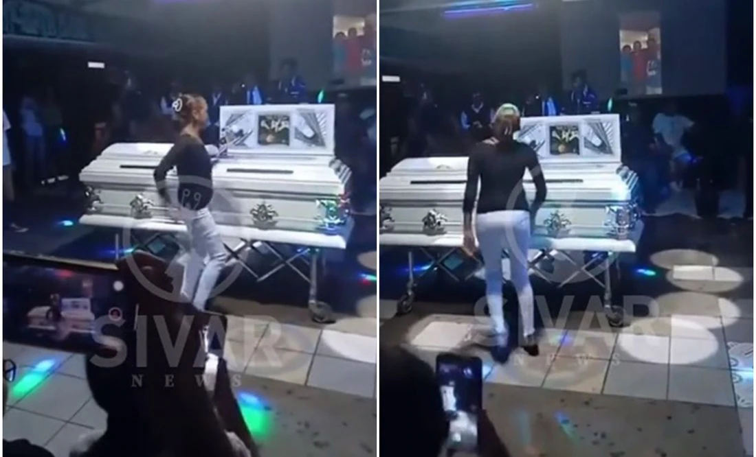 El hecho que fue captado en video y difundido en redes sociales se muestra el momento en que un grupo de personas rodean el ataúd de color blanco, que se encuentra en el centro de la pista de baile, mientras que una mujer baila junto al difunto, en su honor.