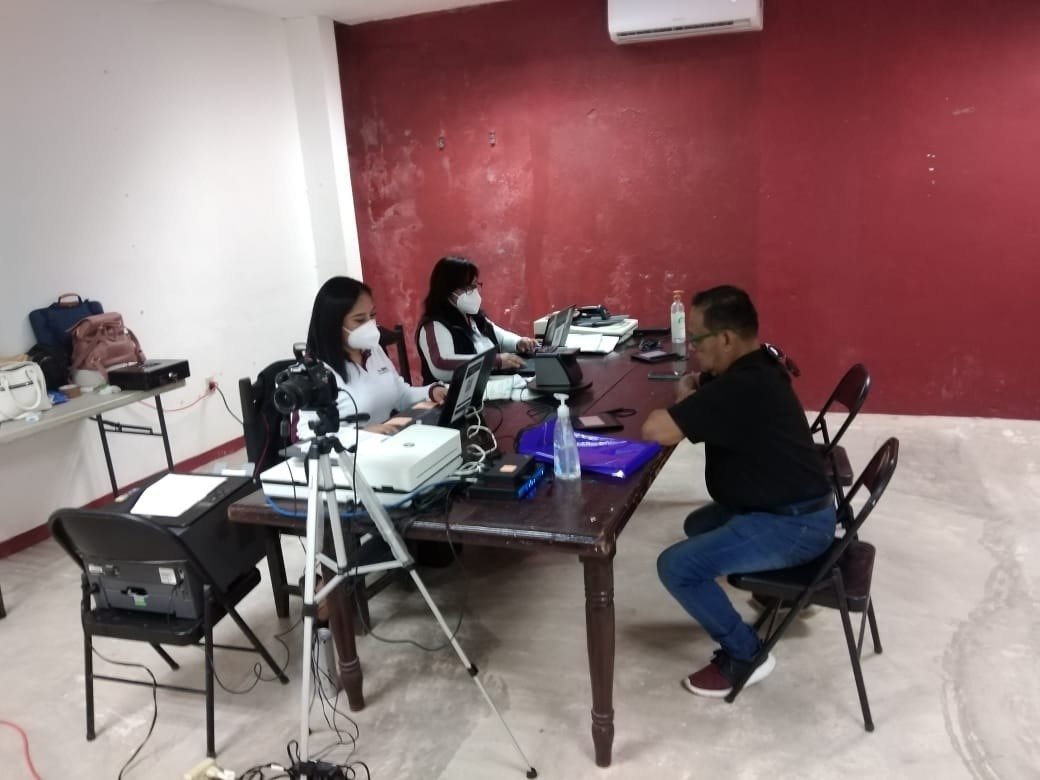 El módulo se instaló en las oficinas de la junta municipal de Sabancuy desde las 8:00 horas en donde ya había pobladores en espera para pasar a realizar el trámite de sus credenciales.
