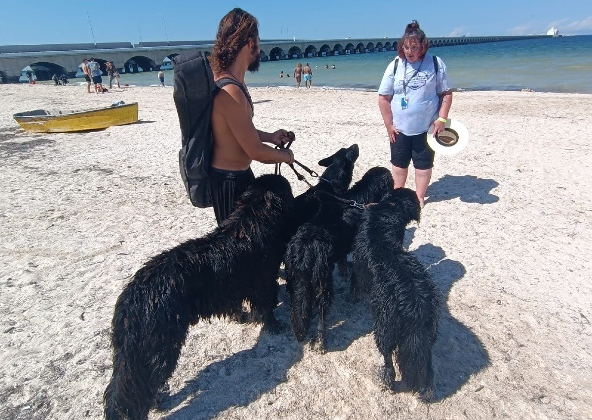 De la mañana a poco después del mediodía, Palazuelos recorrió la playa del malecón con los cuatro perros, todos negros y grandes, que llamaron la atención de los turistas nacionales y extranjeros que estaban ahí.