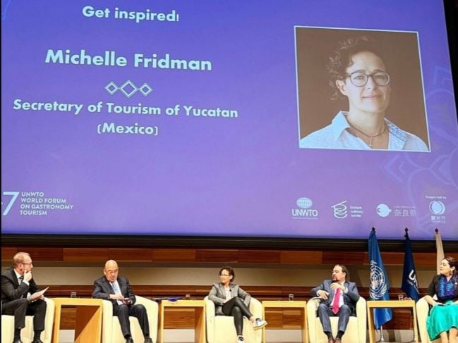 Bajo el lema “Turismo Gastronómico para las Personas y el Planeta: Innovar, Empoderar y Preservar”, se llevó a cabo el 7º Foro Mundial de la OMT sobre Turismo Gastronómico del 12 al 15 de diciembre del presente en Nara, Japón, y en la que, la titular de la Secretaría de Fomento Turístico de Yucatán (Sefotur), Michelle Fridman, en representación del gobernador Mauricio Vila Dosal, tuvo una destacada participación en el panel Get Inspired!, en la que se expusieron las iniciativas exitosas en el turismo gastronómico.
