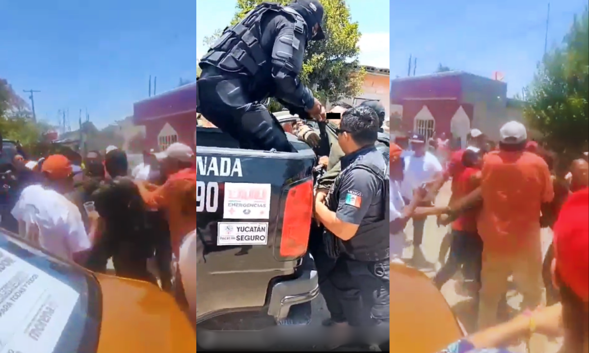 Circulan en redes sociales vídeos de un zafarrancho entre ciudadanos y policías en la ciudad de Kanasín, cuando estos intentaron detener al operador de una campaña, en el marco de la jornada electoral en Yucatán.